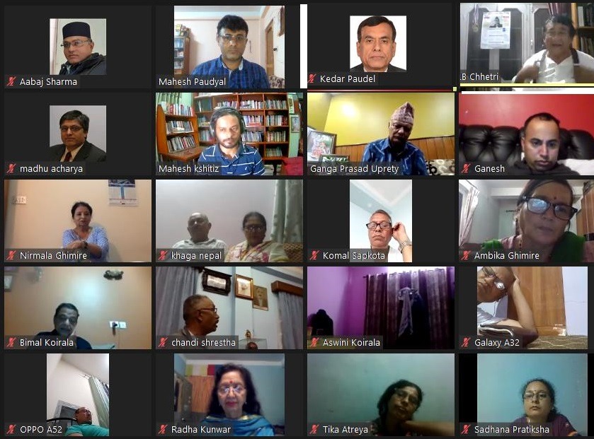 Indramaya, a novel by Bhojraj Ghimire, was launched virtually on zoom in Kathmandu on Thursday.  The author’s maiden novel was launched by Chief Guest, Chancellor of Nepali Academy, Mr Ganga Prasad Upreti in an event chaired by poet and lyricist Dr. Bimal Koirala. LB Chhetri, Sadhana Pratikshya, Ghanendra Ojha and Mahesh Paudyal reviewed the work and named the work a daring feat, having borrowed the protagonist from master novelist BP Koirala. Indramaya, as a character, is taken is one of the boldest women characters ever featured in Nepali fiction.